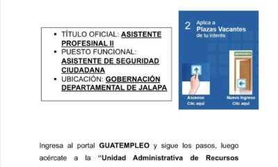 CONVOCATORIA EXTERNA No. de Proceso: 27553 Te invitamos a participar en la convocatoria externa Para optar al puesto de: Asistente Profesional II, en Gobernación Departamental de...