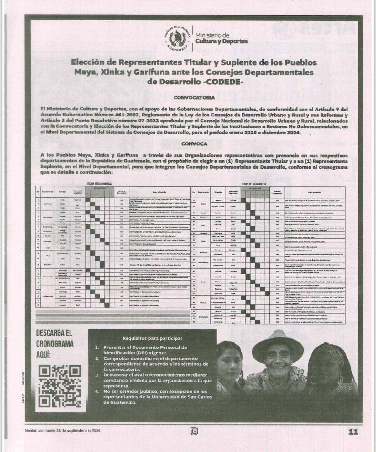 Convocatoria para las Asambleas de Elección de representantes de titulares y suplentes para Pueblos Maya, Xinka y Garífuna ante los Consejos Departamentales de Desarrollo para el período 2025-2026